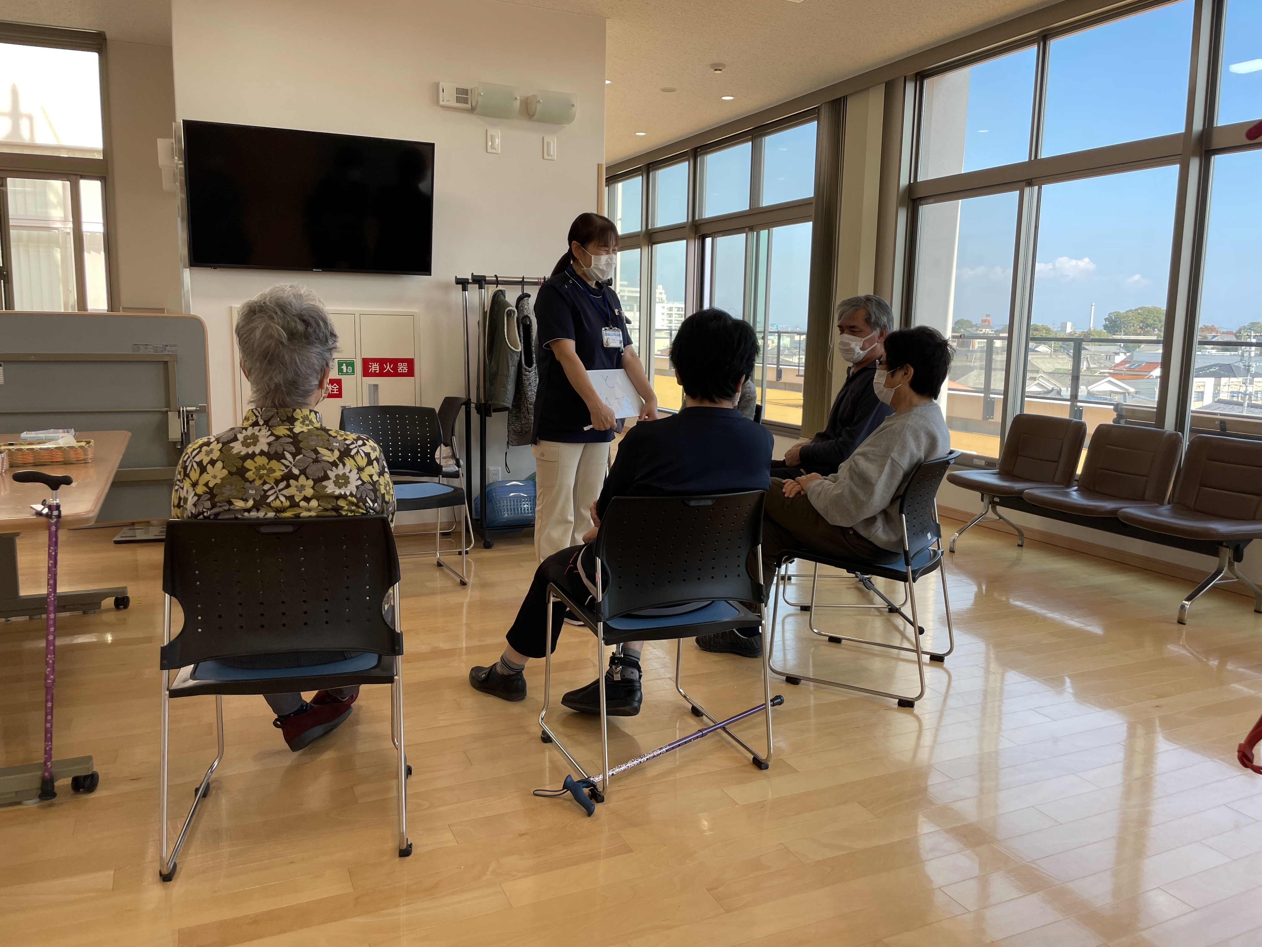 (1)防火管理者は施設の防火管理者を当て、火元責任者には事業所理学療法士を当てる。